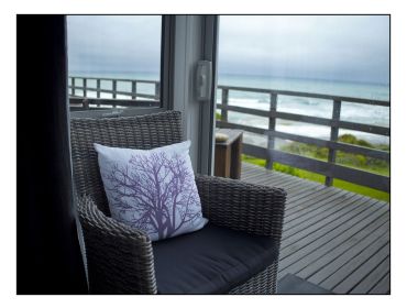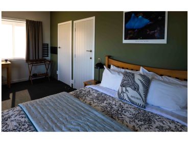 Our Koromiko room is decorated in warm colours with NZ native recycled furniture throughout and queen bed. A warm, cosy room that opens out on to the balcony, comfortable seating in the bay window or you can lie in bed and watch the rolling surf. Ensuite bathroom with shower. The smaller of our rooms but still offering comfort and style and fantastic views overlooking the Tasman Sea. Rate includes breakfast.