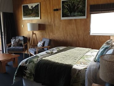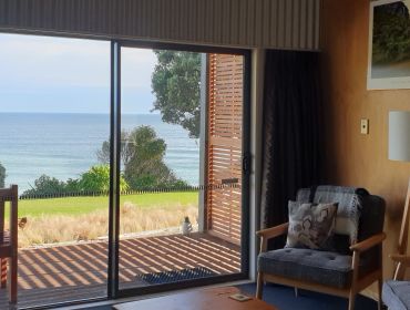Enjoy some space and tranquility. Nikau is a lovely large room with cosy Super-king bed, luxurious bedding and linens and comfortable sitting area positioned to make the most of the views. Decorated in warm neutral colourings in keeping with our beachfront location and using Native NZ recycled timbers and beach stones. Large ensuite bathroom with shower. Slide back the curtains, put your feet up and relax in this gorgeous setting while listening to the sound of the surf and the birds singing. Rate is for two people and includes breakfast.